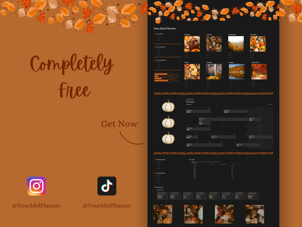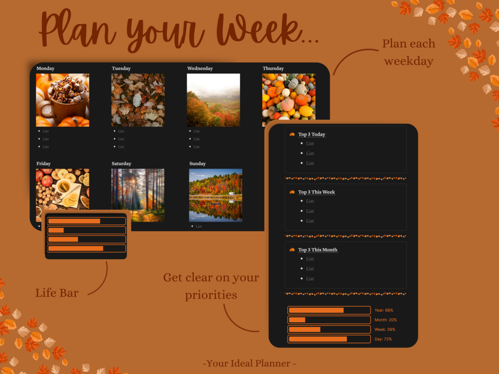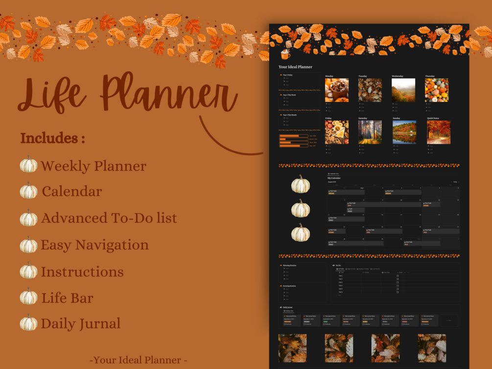 New to Notion? Notion is a powerful tool that can help you optimize your workflow and productivity. It might overwhelm you at first, but this template accompanied by detailed explanations, is sure to give you a smooth start to Notion and its possibilities. If you loved this template make sure to check out my new Fall themed planner pack.
