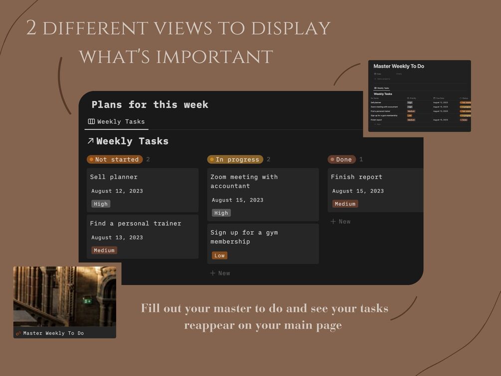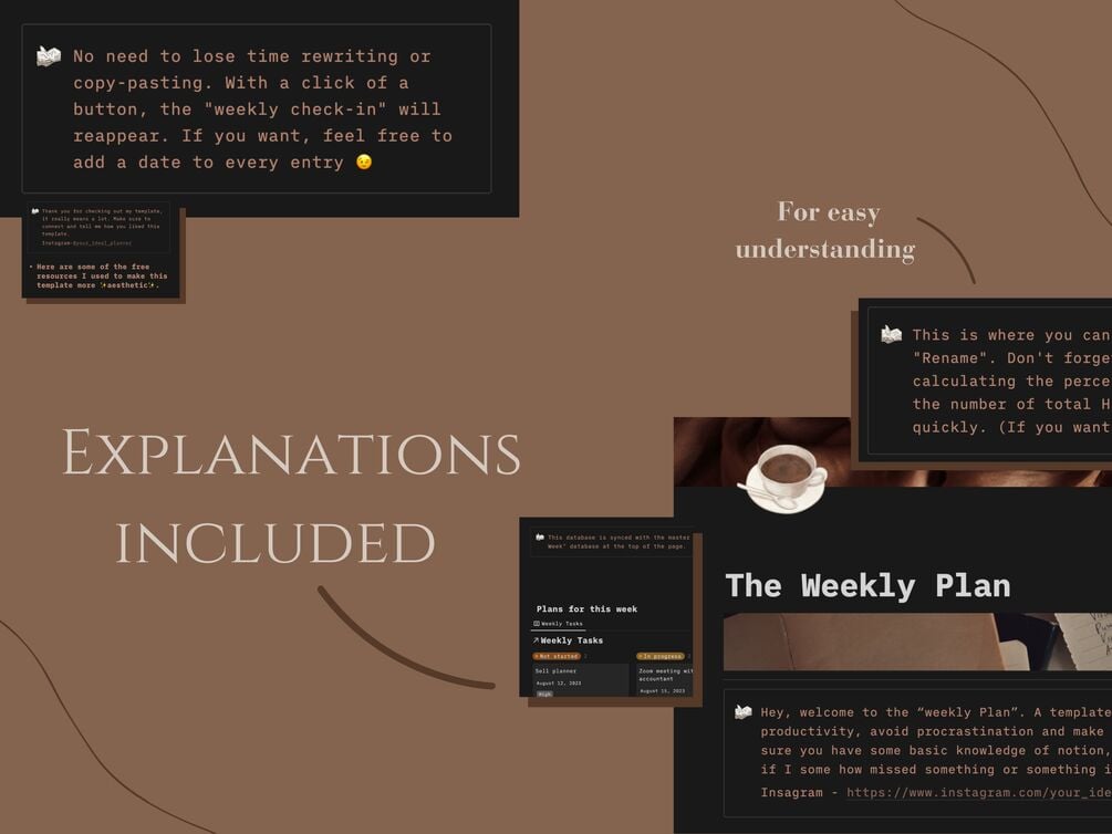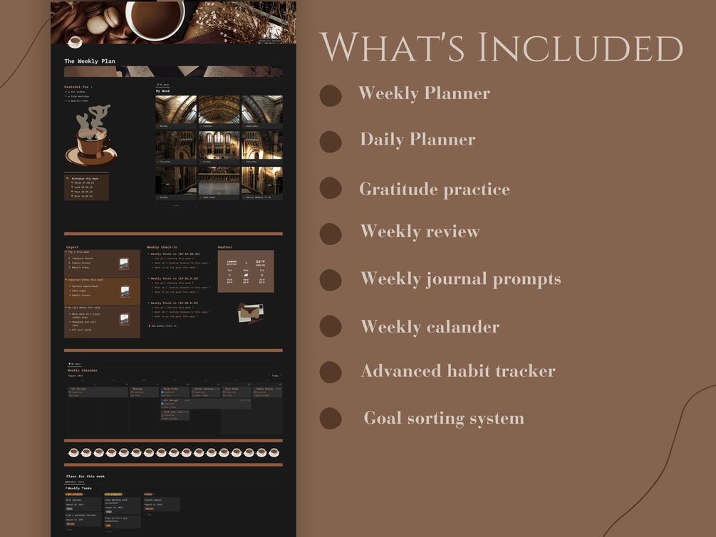 Notion Weekly planner, Dark academia palanner, Aesthetic Notion Planner, Notion template 2023, Habit tracker, Notion organizer